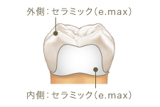○外側はセラミックなので自分の歯に近い色調が再現できる